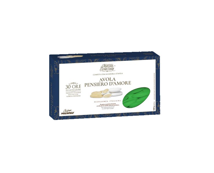 Rendi speciale ogni evento con i Confetti Maxtris Avola Pensiero D'Amore Verde, una scelta elegante e deliziosa per sorprendere i tuoi ospiti.