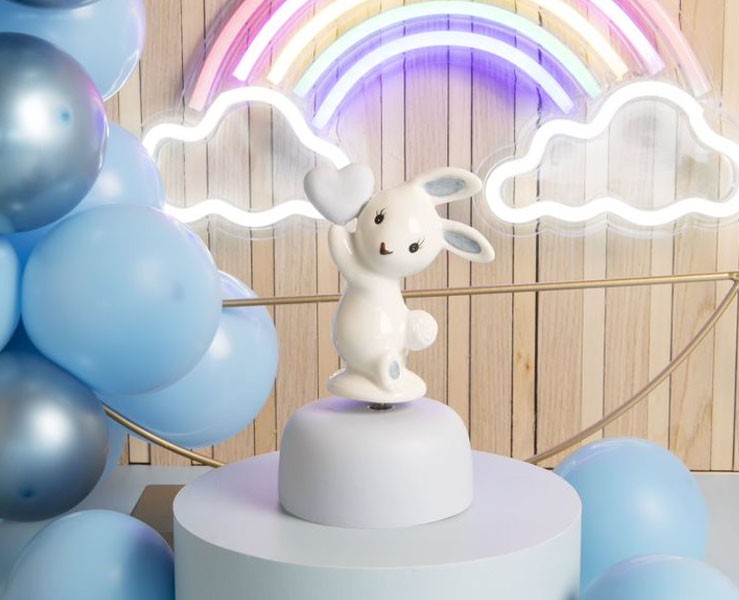 Bomboniera Nascita Battesimo Claraluna Carillon con coniglietto azzurro