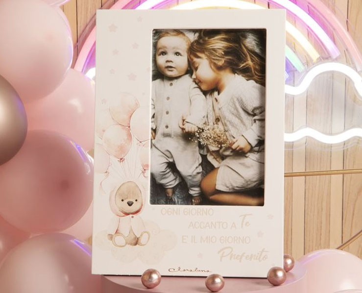 Bomboniera Nascita Battesimo Claraluna portafoto con orsetto rosa