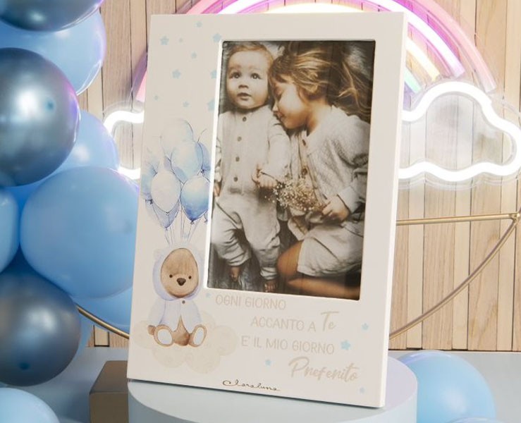 Bomboniera Nascita Battesimo Claraluna portafoto con orsetto azzurro