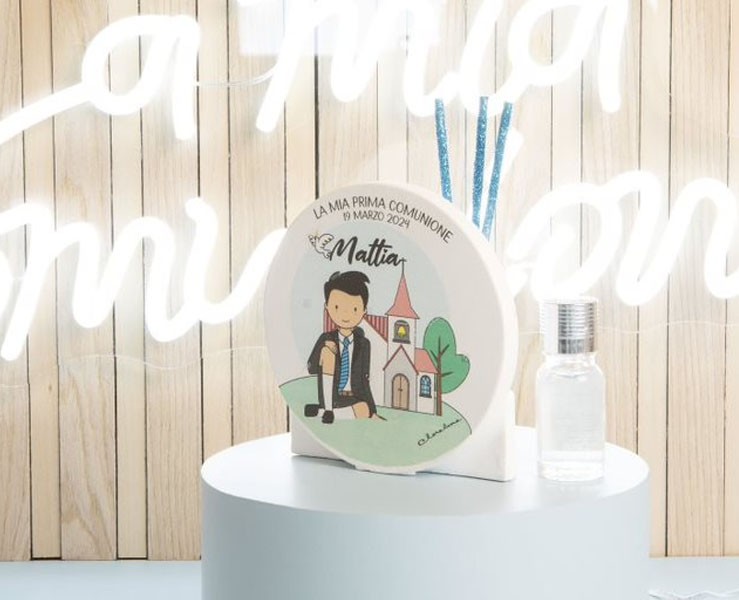 Bomboniera Comunione Battesimo Cresima Claraluna diffusore con scritta personalizzabile