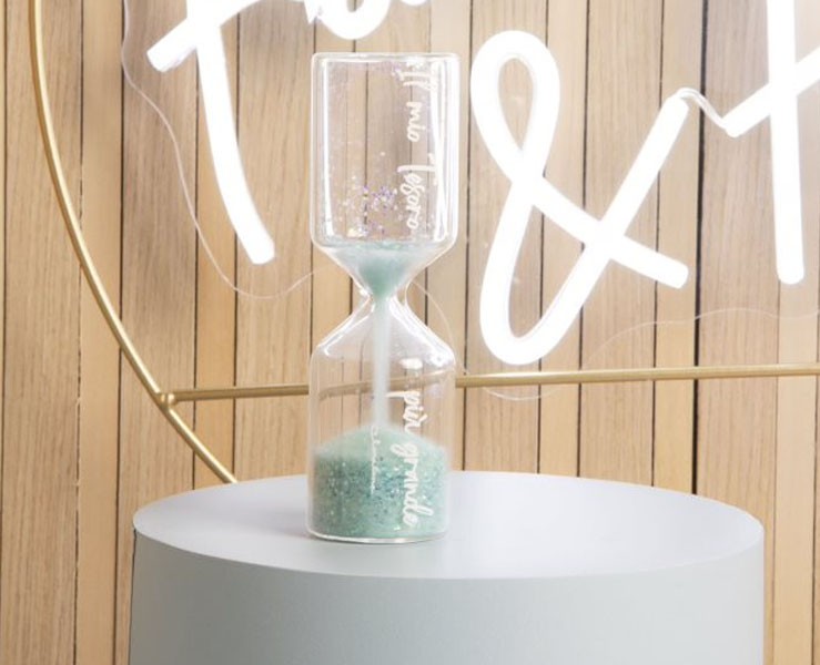 Bomboniera Comunione Battesimo Cresima Claraluna clessidra con sabbia azzurra piccola