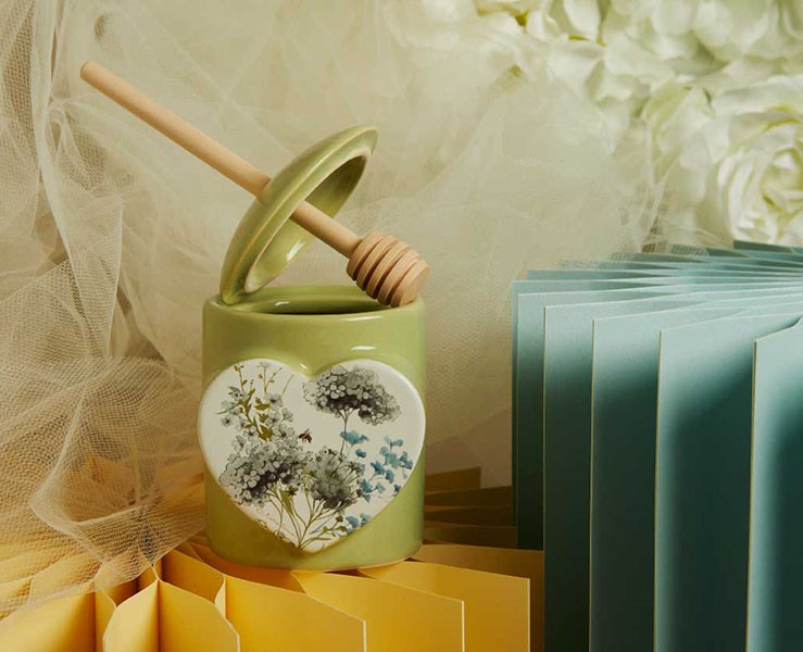 Bomboniera Claraluna 2026 Porta Miele Verde con Spargimiele Decoro Floreale