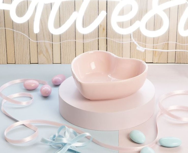 Bomboniera Comunione Battesimo Cresima Claraluna ciotola cuore rosa