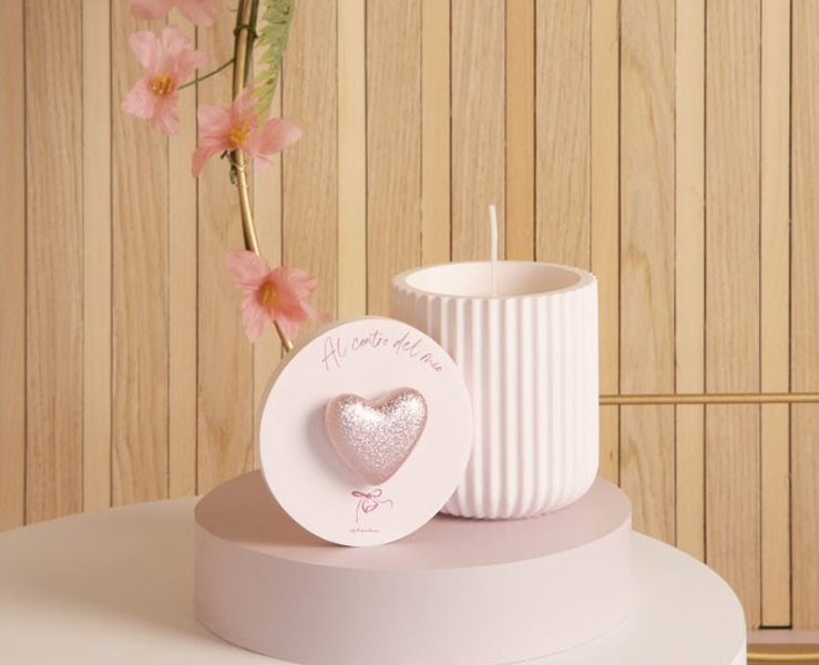 Bomboniera Comunione Battesimo Cresima Claraluna scatola più candela rosa