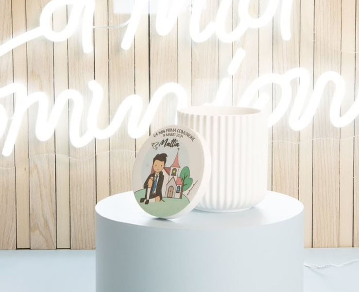 Bomboniera Comunione Battesimo Cresima Claraluna SCATOLA PIù CANDELA con scritta personalizzabile