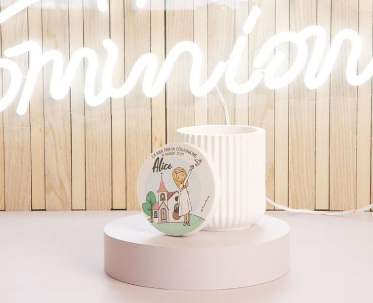 Bomboniera Comunione Battesimo Cresima Claraluna SCATOLA CON SCRITTA PERSONALIZZABILE
