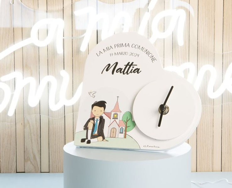 Bomboniera Comunione Battesimo Cresima Claraluna orologio cuore con scritta personalizzabile