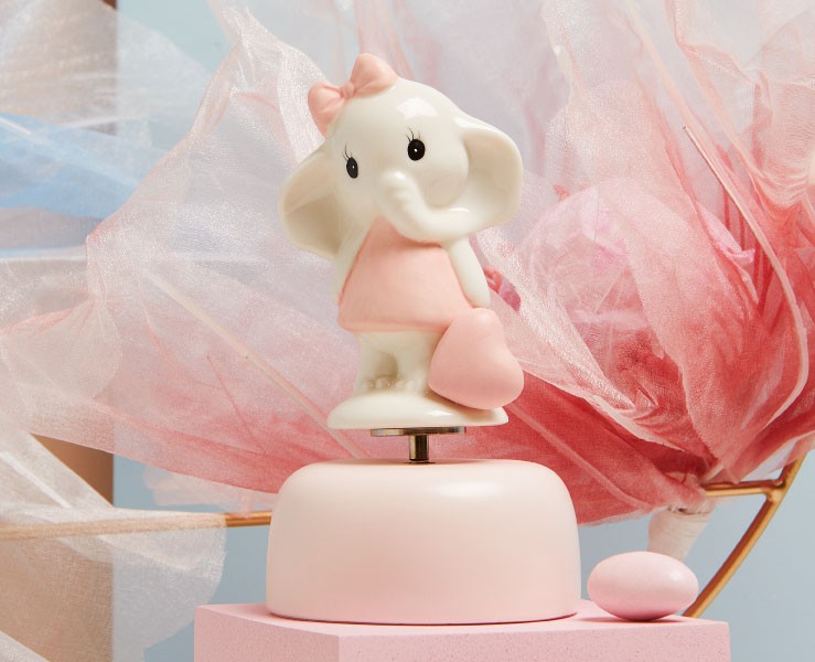 Bomboniera Nascita Battesimo Claraluna Carillon elefante rosa 2025