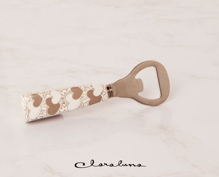 Bomboniera Matrimonio Claraluna apribottiglie decoro cuori
