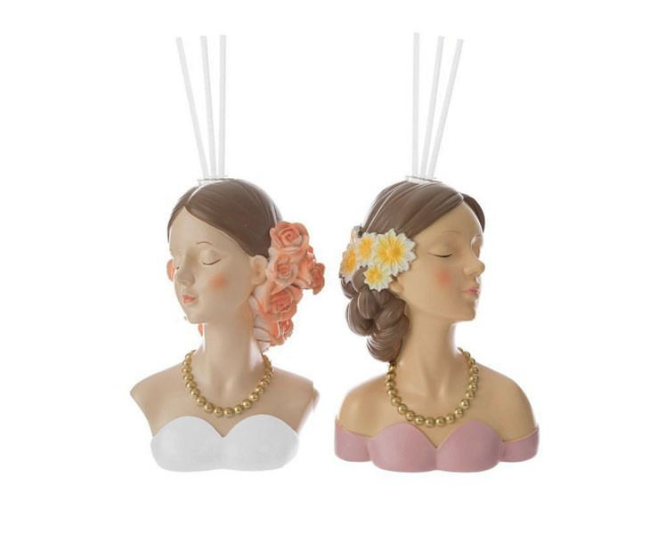 Scopri l'eleganza e la raffinatezza del Profumatore Girl in Resina, un complemento d'arredo unico e originale. Disponibile in due versioni assortite, ogni figura rappresenta la delicatezza femminile con dettagli floreali e collane dorate. Il design accurato e i colori pastello rendono questo profumatore ideale per impreziosire ambienti come salotti, camere da letto o bagni, diffondendo una fragranza delicata e accogliente.