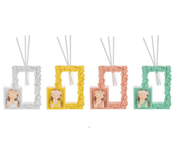 Aggiungi un tocco di vivacità e originalità ai tuoi ambienti con il Profumatore Girls in Resina, disponibile in quattro colorazioni assortite: bianco, giallo, rosa e verde. Ogni diffusore è impreziosito da un design femminile e floreale, perfetto per portare un delicato profumo e un'elegante decorazione nei tuoi spazi.