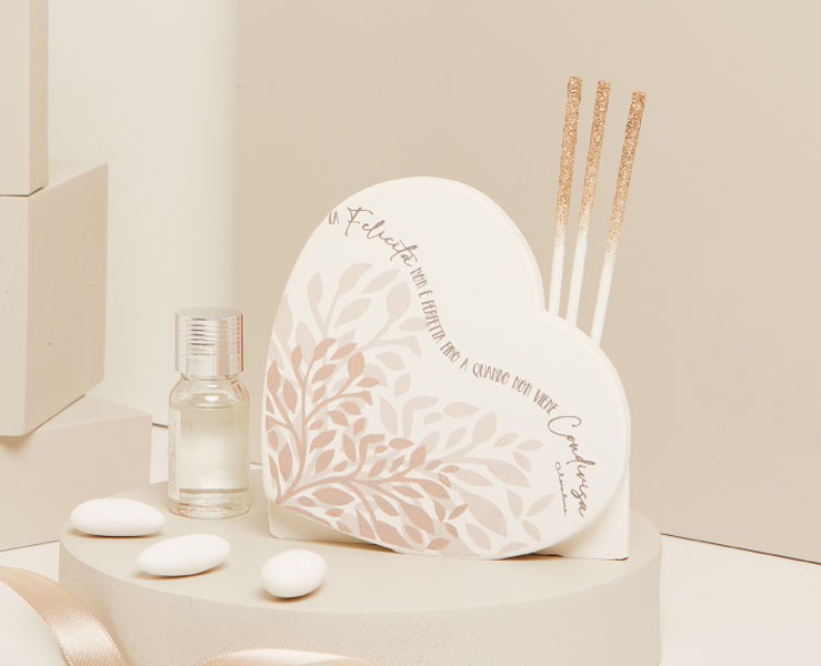 Confezionamento: Il diffusore è presentato in una confezione regalo, perfetta per un evento speciale come un matrimonio.