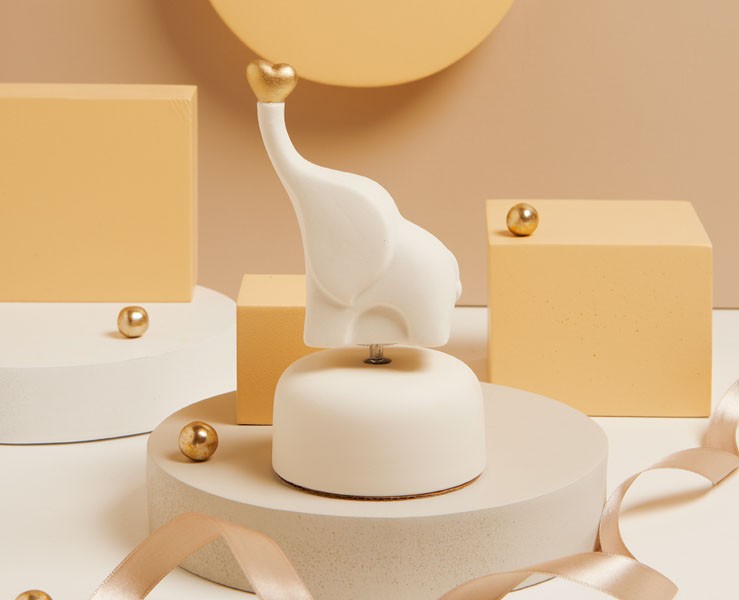 Bomboniera matrimonio Claraluna Carillon Elefantino Bianco con Cuore Oro
