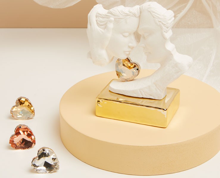 - Dettaglio decorativo: Piccolo cuore cristallino colorato, posto tra la coppia