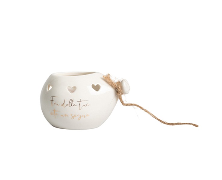 Bomboniera Matrimonio harmony CANDELA PORCELLANA PALLONCINO BIANCO CON FRASE CON BOX E SACCHETTO