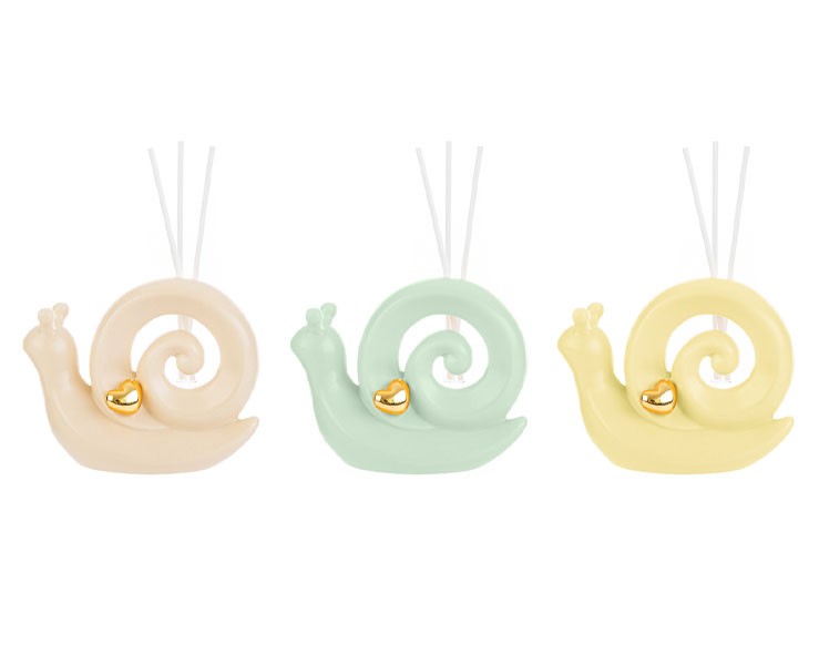 Bomboniera Battesimo Cresima Comunione Le Stelle PROFUMATORE LUMACA PORCELLANA assORTITO IN 3 COLORI