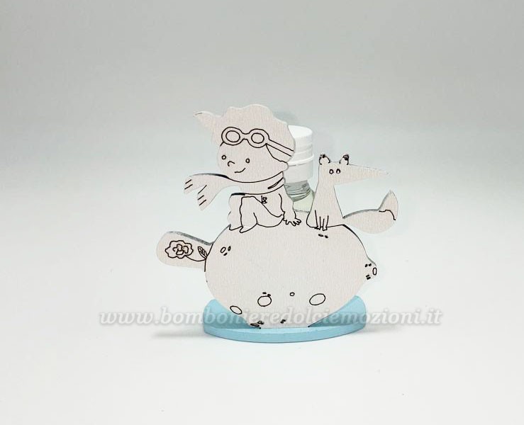 Bomboniera nascita e battesimo mariella martini profumino con bambino e animale azzurro e bianco