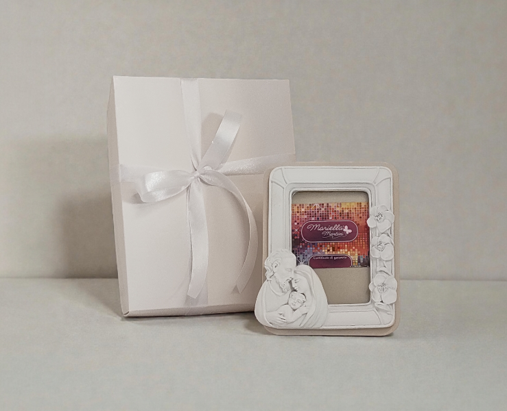 Bomboniera Portafoto Sacra Famiglia con Fiori a Rilievo