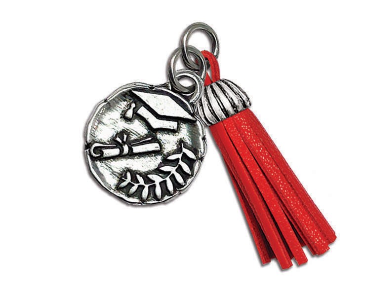 Bomboniera Laurea ciondolo tocco pergamana con nappa rossa