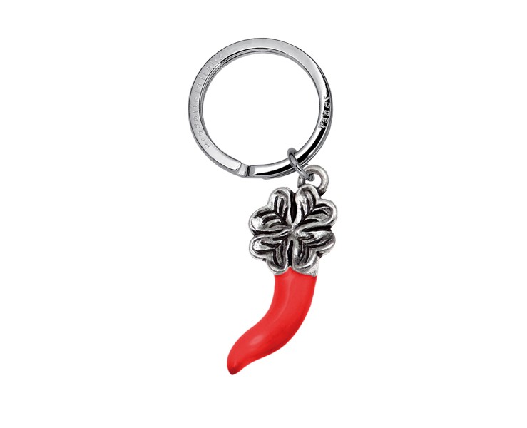 Portachiavi Corno quadrifoglio smaltato rosso