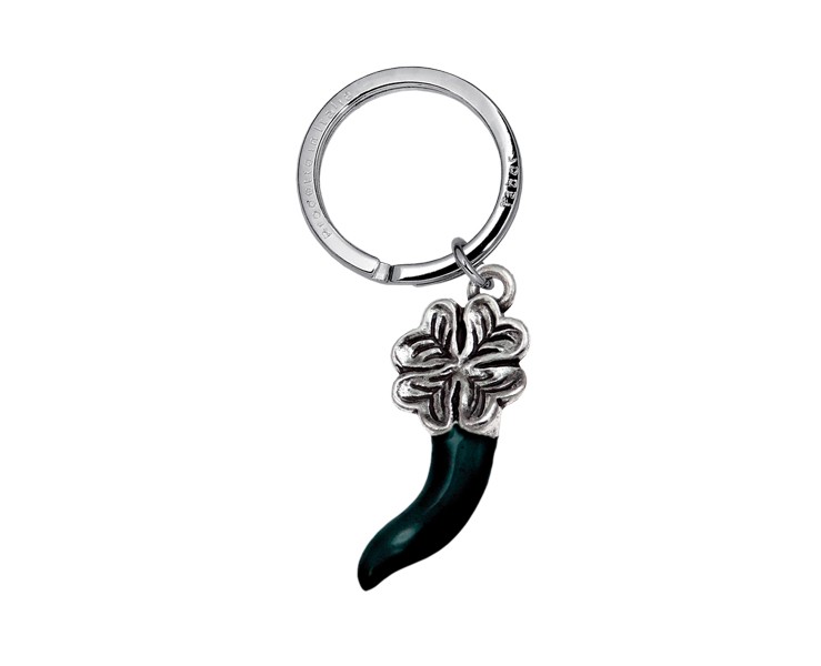 Portachiavi Corno quadrifoglio smaltato nero
