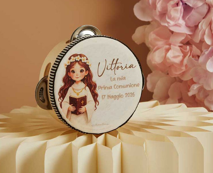Bomboniera Claraluna Tamburello Decorativo Comunione Femmina Personalizzabile