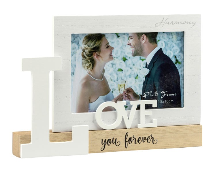 Bomboniera Matrimonio Harmony portafoto legno con scritta love you forever