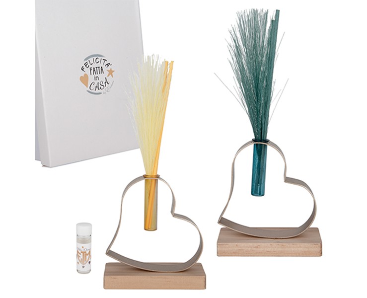 Diffusore Cuore con base in legno e provetta.