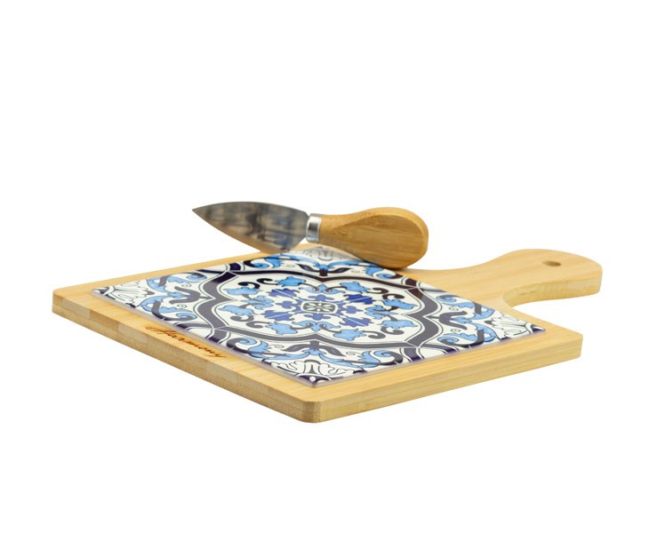 Bomboniera Matrimonio Harmony tagliere grande porcellana con manico legno decalco maiolica blue