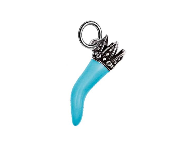 Porta fortuna e tradizione si incontrano in questo elegante ciondolo a forma di corno celeste, arricchito da una raffinata corona in bagno d’argento. Un simbolo di buon auspicio perfetto come bomboniera per qualsiasi evento speciale, dal matrimonio, compleanni, laurea e tante altre.
