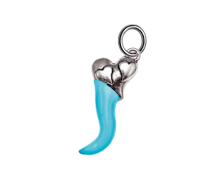 Ciondolo Corno cuore smaltato celeste