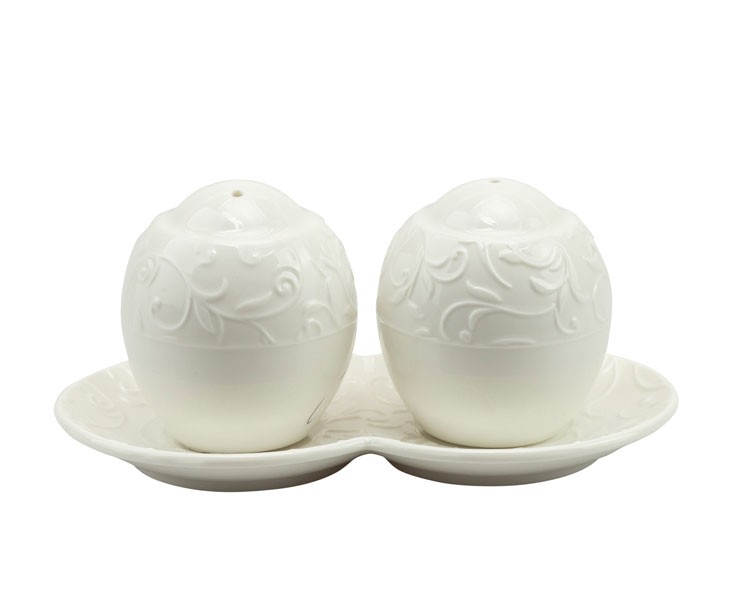 Bomboniera Matrimonio Harmony sale e pepe con vassoio in porcellana decalco floreale