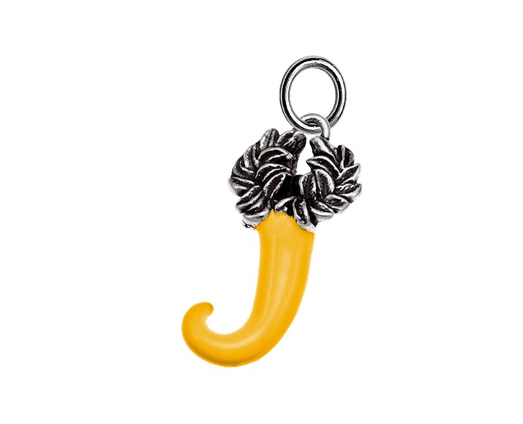 Porta fortuna e tradizione si incontrano in questo elegante ciondolo a forma di corno giallo, arricchito da una raffinata corona d'alloro in bagno d’argento. Un simbolo di buon auspicio perfetto come bomboniera per qualsiasi evento speciale, dal matrimonio, compleanni, laurea e tante altre.
