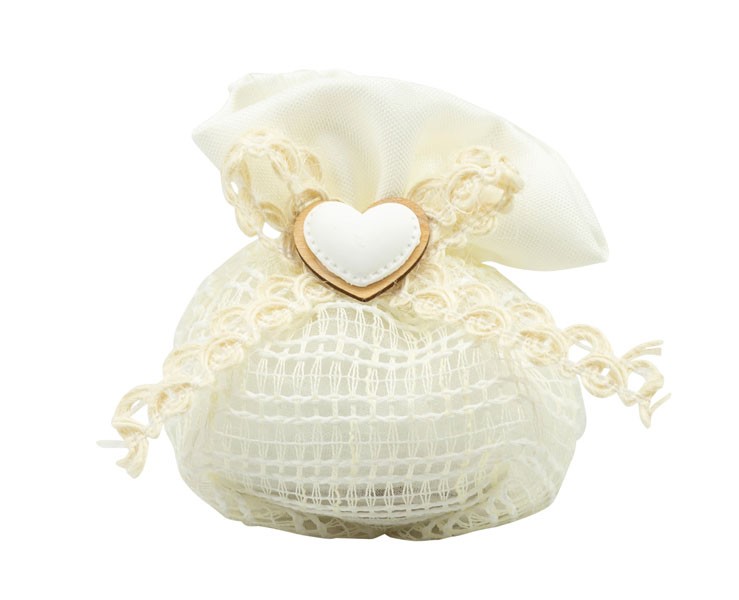 Sacchetto harmony 2024 pochette a rete con cuore gessetto e nastri