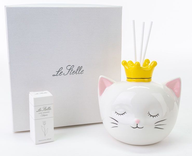 Bomboniera Battesimo comunione Le stelle PROFUMATORE GATTINO PORCELLANA grande