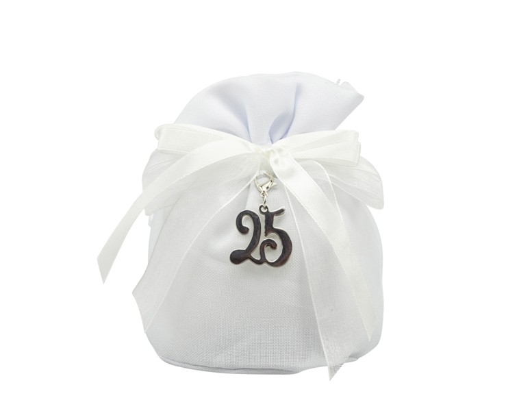 Sacchetto 25esimo ANNIVERSARIO harmony 2024 cotone bianco base tonda con spilla 25
