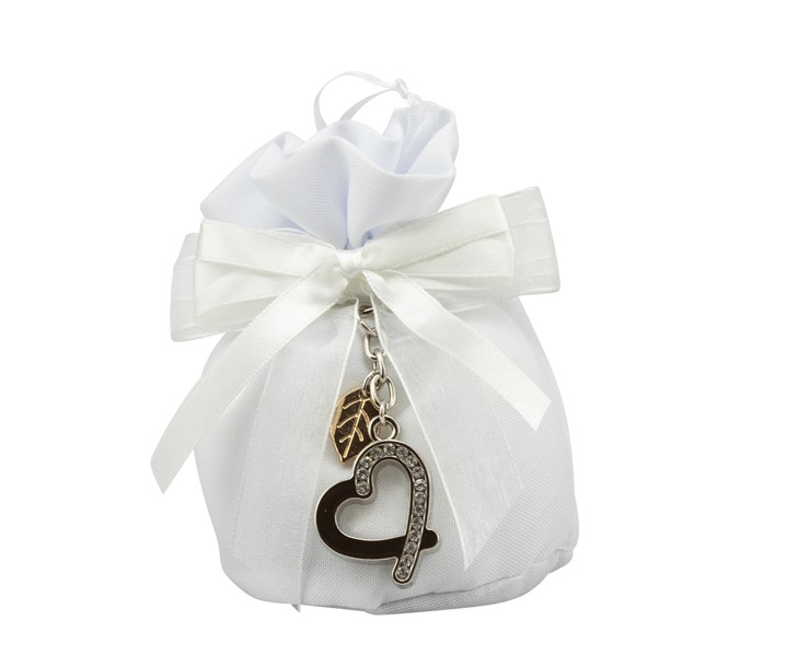 Sacchetto harmony 2024 cotone bianco base tonda con tiranti con portachiavi cuore con strass