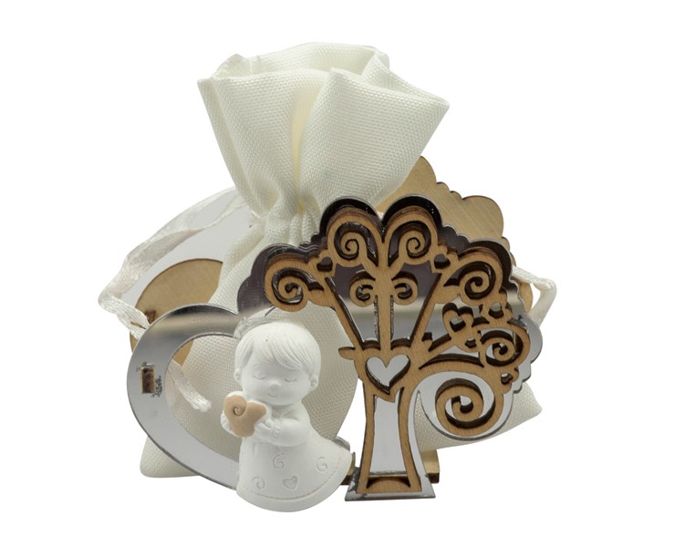 Sacchetto harmony 2024 SCATOLINA CUORE LEGNO ANGELO CON FINITURA A SPECCHIO ORO