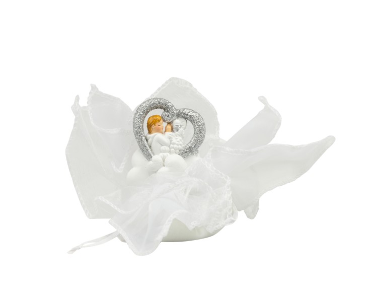Sacchetto harmony 2024 ICONA RESINA NUVOLA CON CUORE BIMBO COMUNIONE GLITTER SILVER E FAZZOLETTO