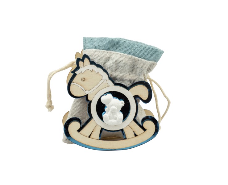 Sacchetto harmony 2024 SCATOLINA LEGNO CAVALLUCCIO CON ORSETTO CELESTE