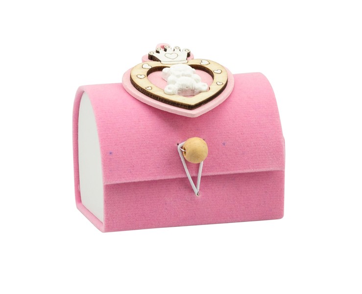 Sacchetto harmony 2024 SCATOLINA SCRIGNO IN VELLUTO ROSA CON CORONA LEGNO E CAVALLINO GESSETTO