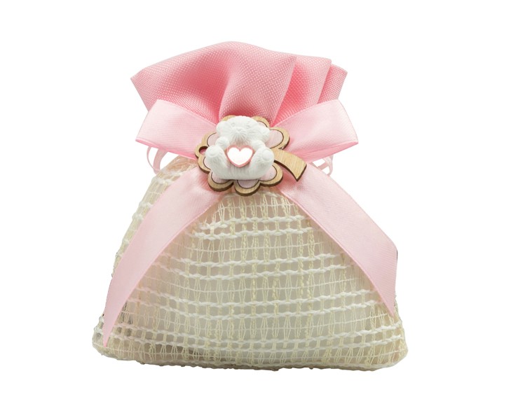 Sacchetto harmony 2024 SACCHETTO RETE/ROSA CON QUADRIFOGLIO E ORSETTO