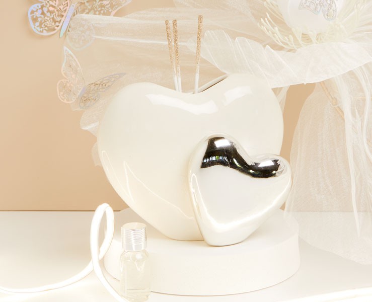 Bomboniera Matrimonio Claraluna diffusore doppio cuore Bianco e Silver