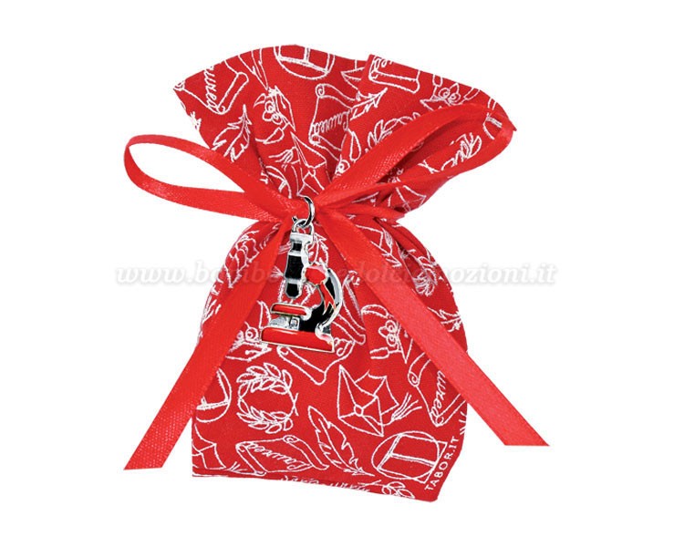 Bomboniera Laurea Chimica ciondolo in bagno argento microscopio smaltato con sacchetto