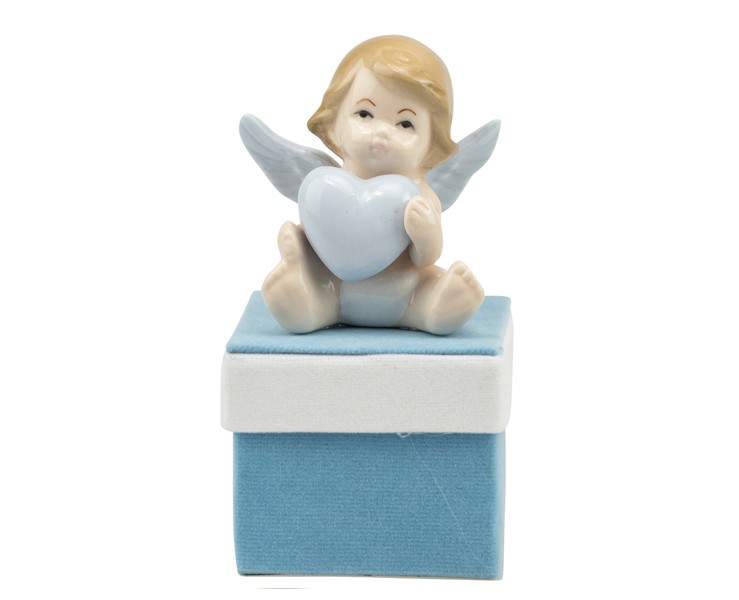 Sacchetto harmony 2024 scatolina quadrata in velluto celeste con angelo in porcellana celeste