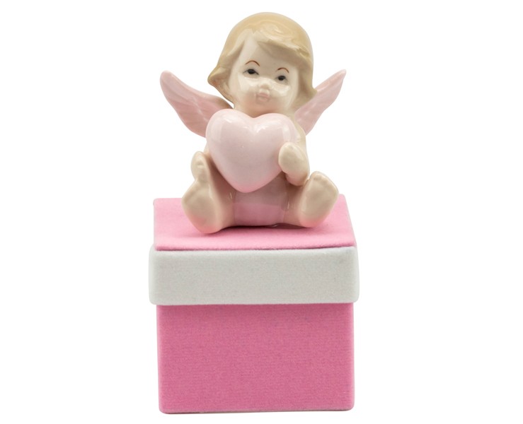 Sacchetto harmony 2024 scatolina quadrata in velluto rosa con angelo in porcellana rosa