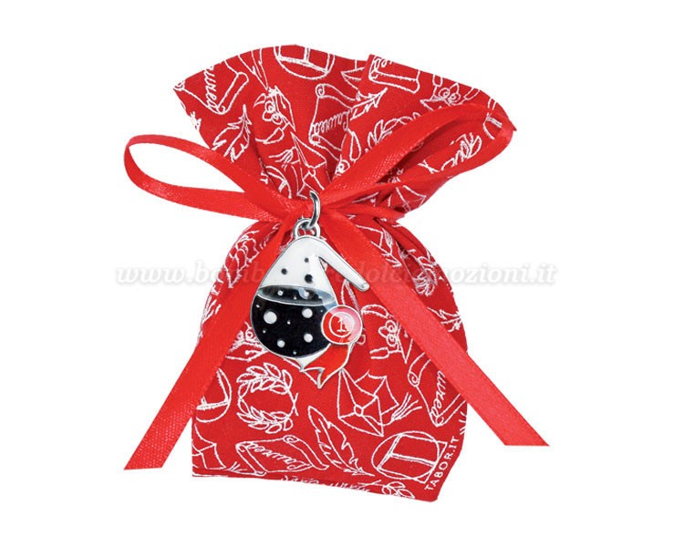 Bomboniera Laurea Chimica ciondolo in bagno argento alambicco smaltato con sacchetto