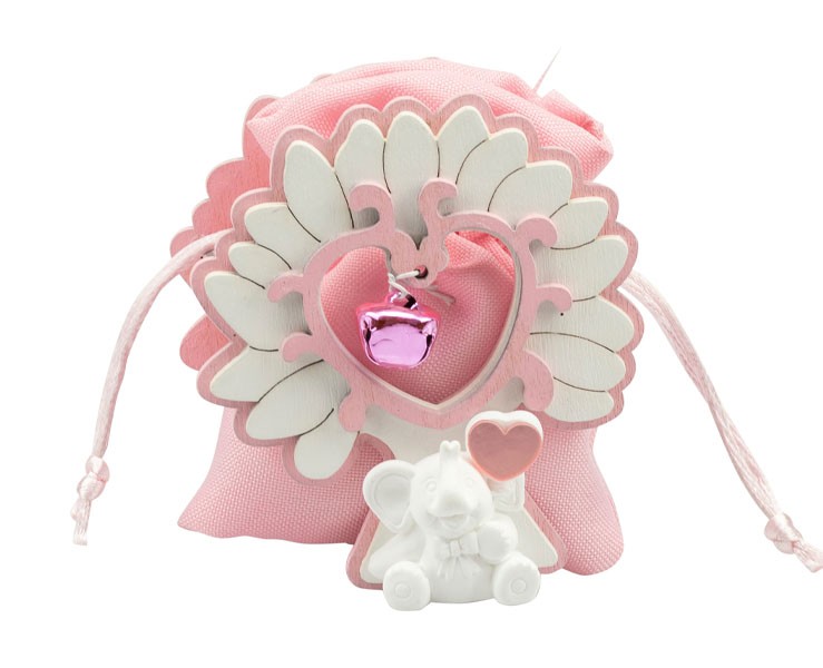 Sacchetto harmony 2024 scatolina legno albero con elefante rosa
