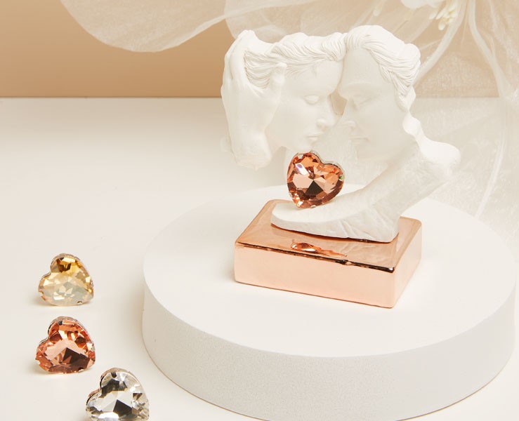- Dettaglio decorativo: Piccolo cuore cristallino colorato, posto tra la coppia